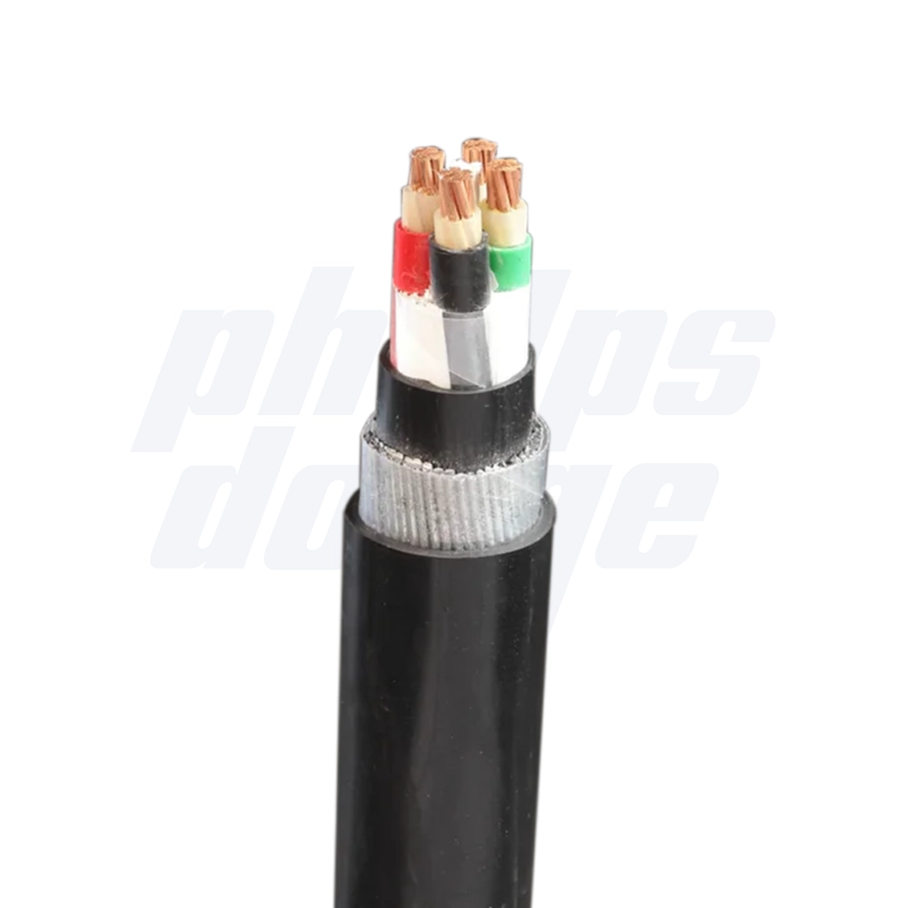Power cable with 0.6kV to 35kV steel wire armoring. Copper and Aluminum 8000 series conductor, PVC or XLPE insulation polyester (mylar) tape core wrap power cable with 0.6kV to 35kV steel wire armouring.